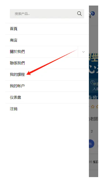 2.在下拉菜單中,找到並選擇「我的課程」,查看你已購買的課程列表